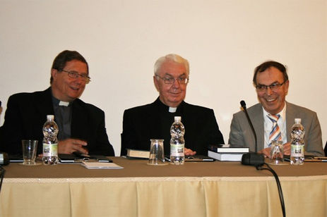 Bischof i. R. Prof. em. Ulrich Wilckens, und Prof. Theodor Dieter, Direktor des Straßburger Instituts für ökumenische Forschung, im Blick auf den Anglikanismus der katholische Bischof von Lausanne, Genf und Fribourg, Prof. em. Charles Morerod.